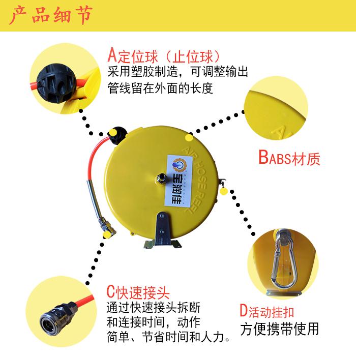 AA系列自動回收卷管器用于輸送壓縮空氣。廣泛應(yīng)用于汽車保養(yǎng)、修理店,工程機械、工廠車間、風炮、風槍等等。